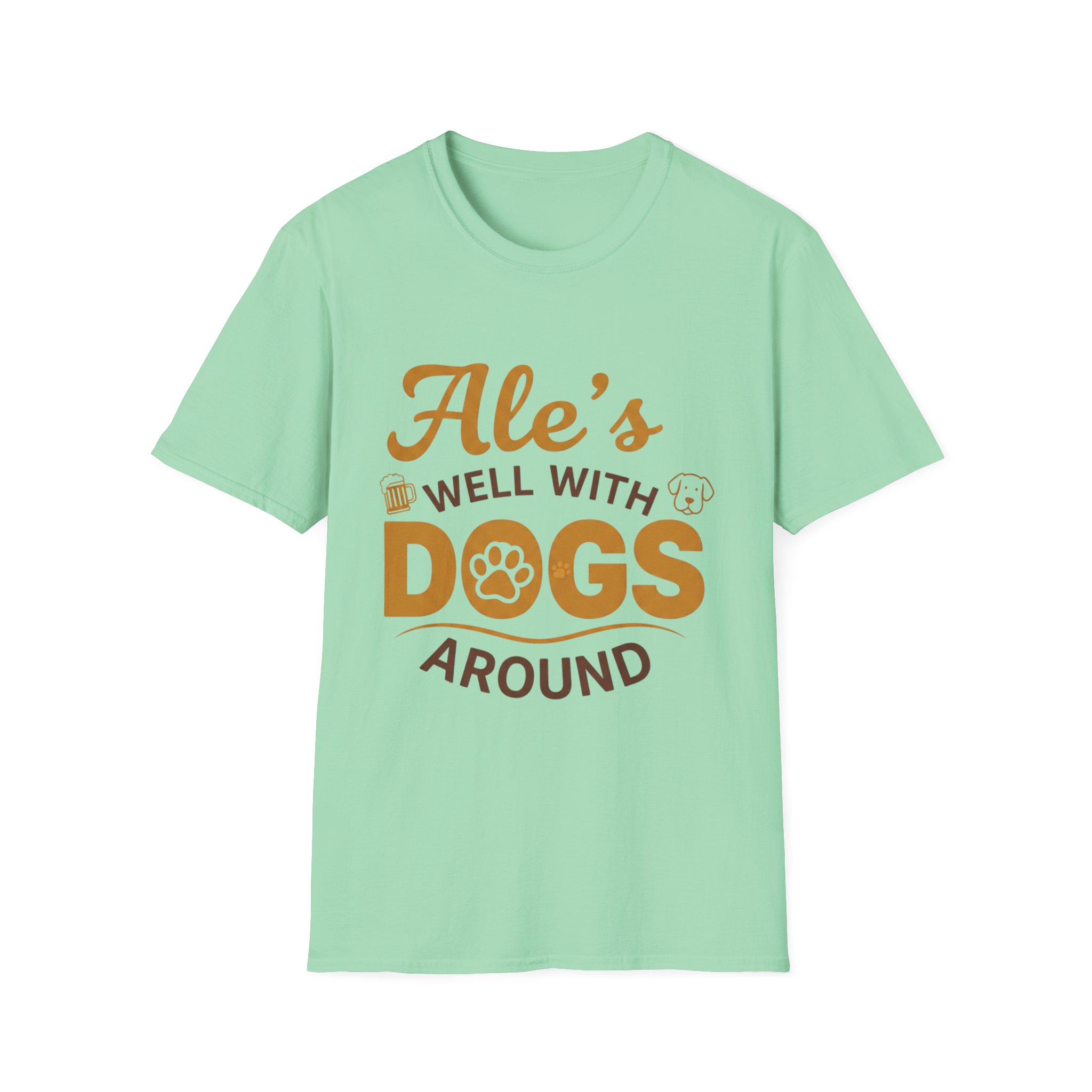 Dog Lover Unisex Softstyle T-Shirt – ‘Ale’s Well with Dogs Around’