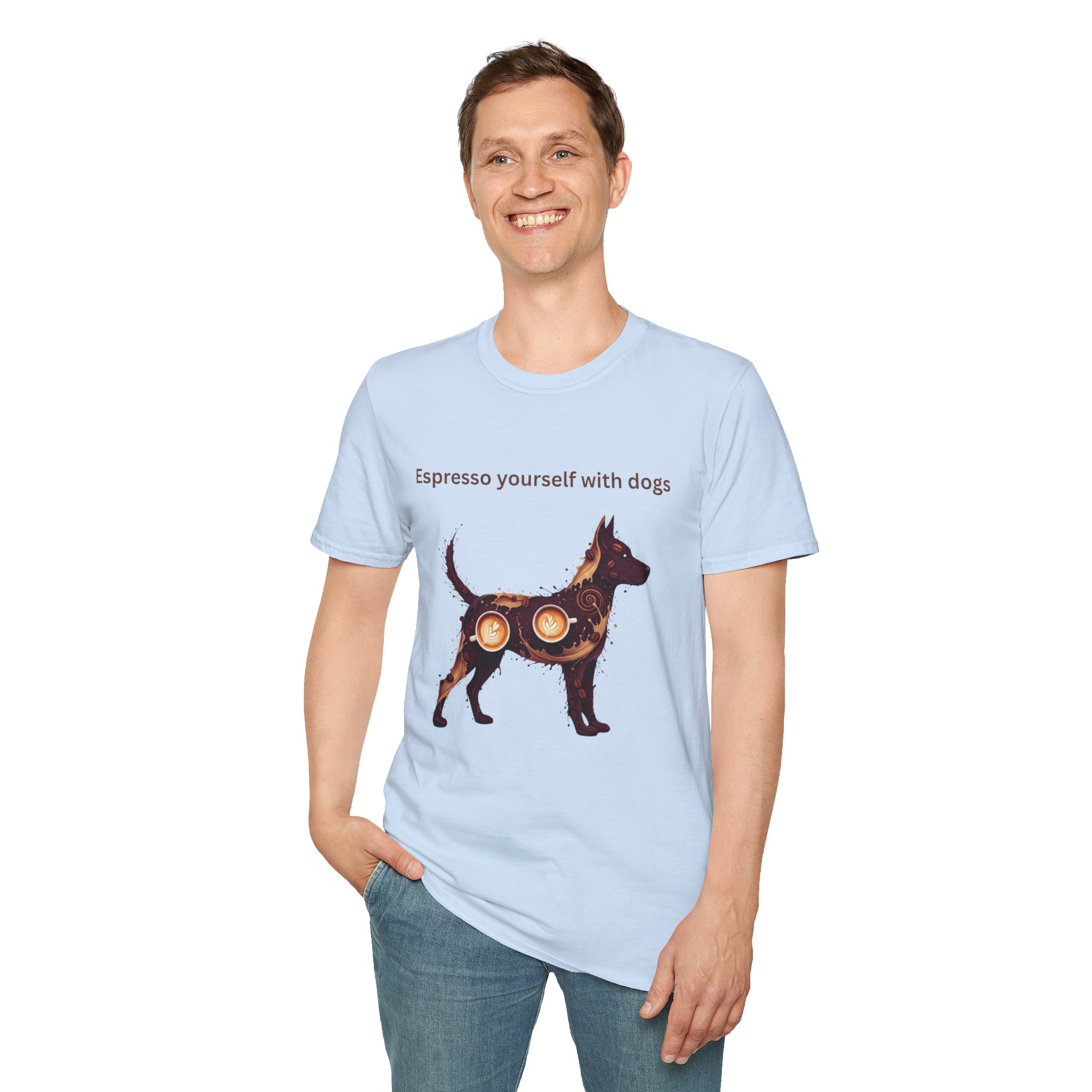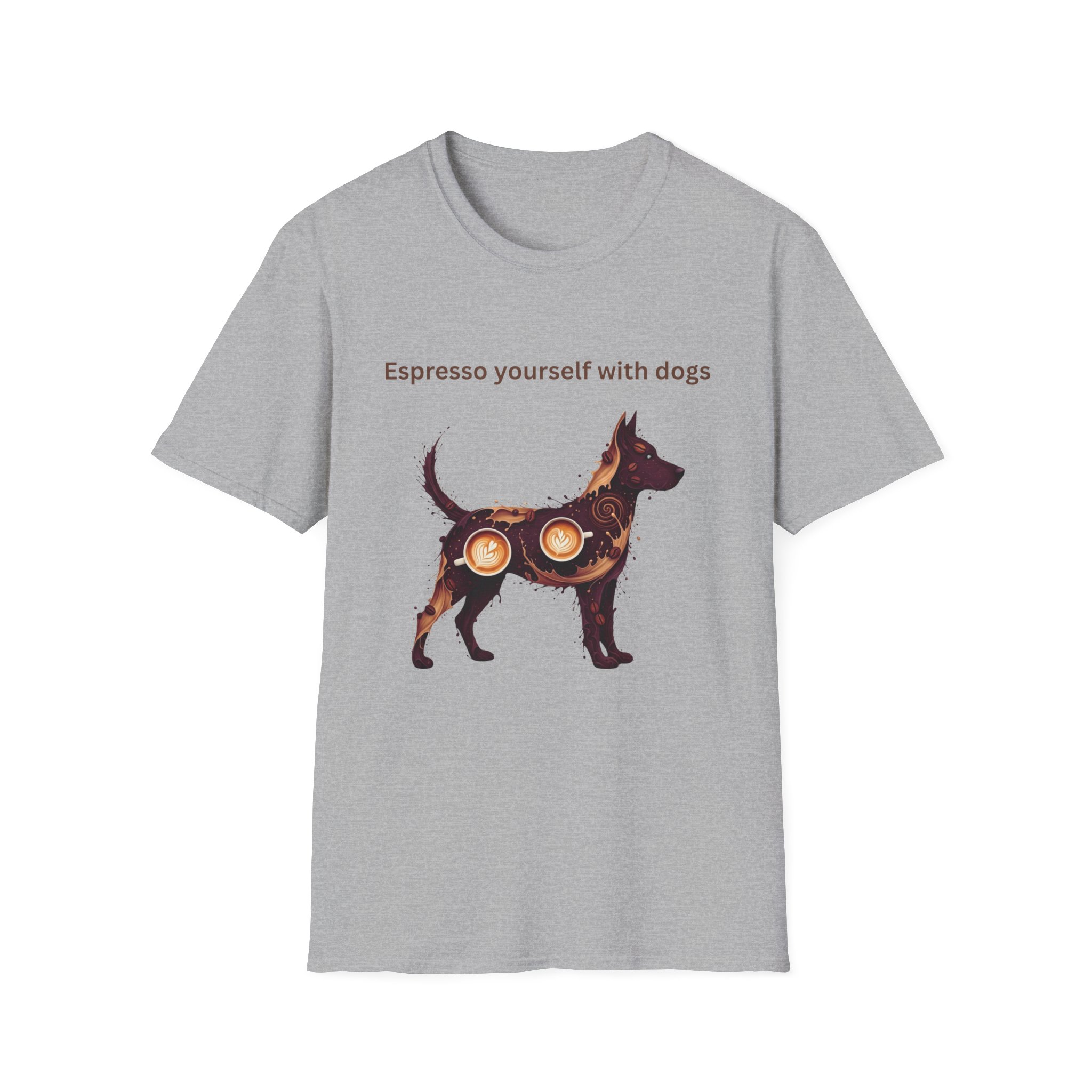 The art-style “Espresso Yourself With Dogs” design features a pup filled with rich espresso tones and latte art details, giving the shirt a warm, cozy vibe that feels straight out of your favorite local café. It’s perfect for morning dog walks, weekend coffee runs, or those quiet, soul-filling moments when you’re savoring a cup while your furry friend curls up beside you.