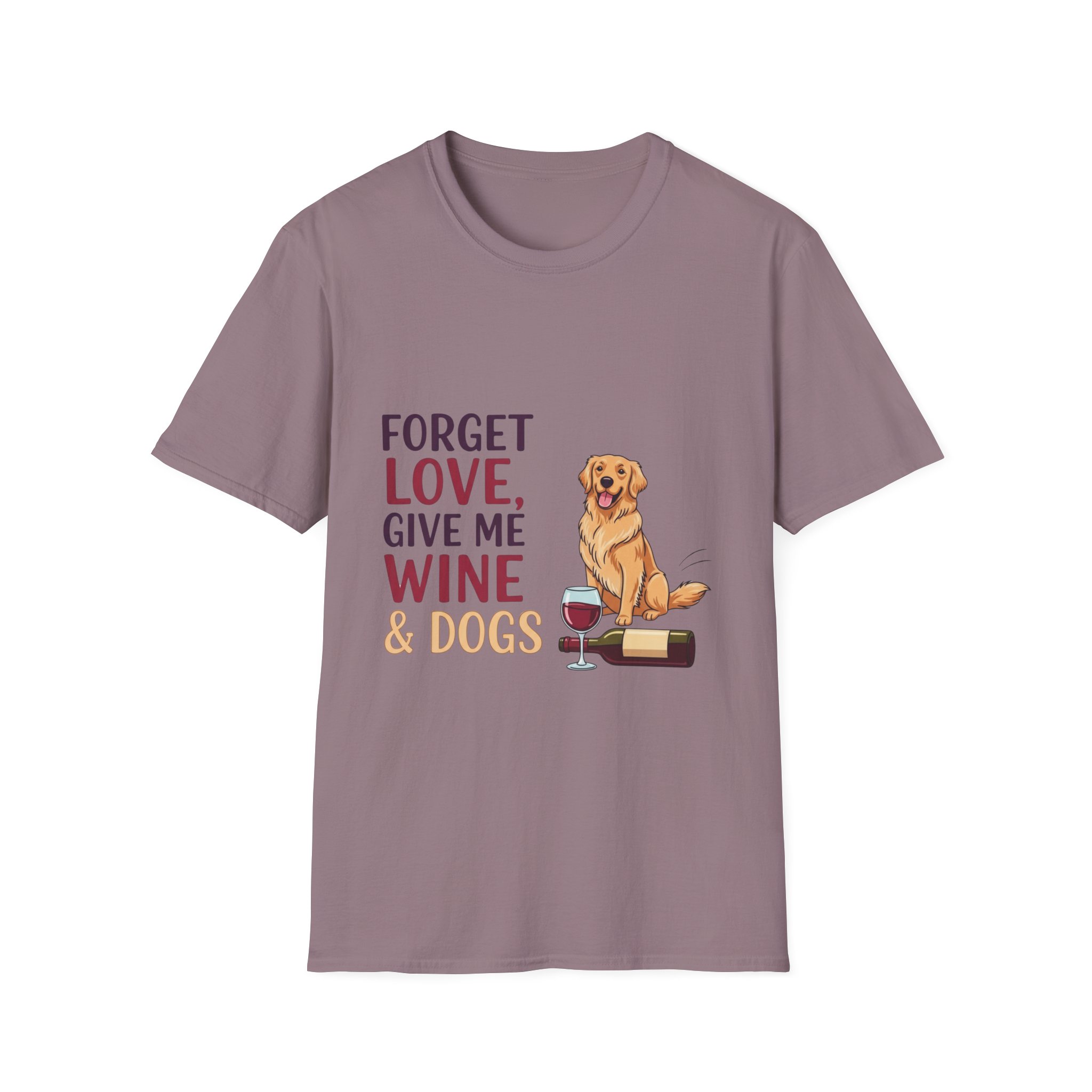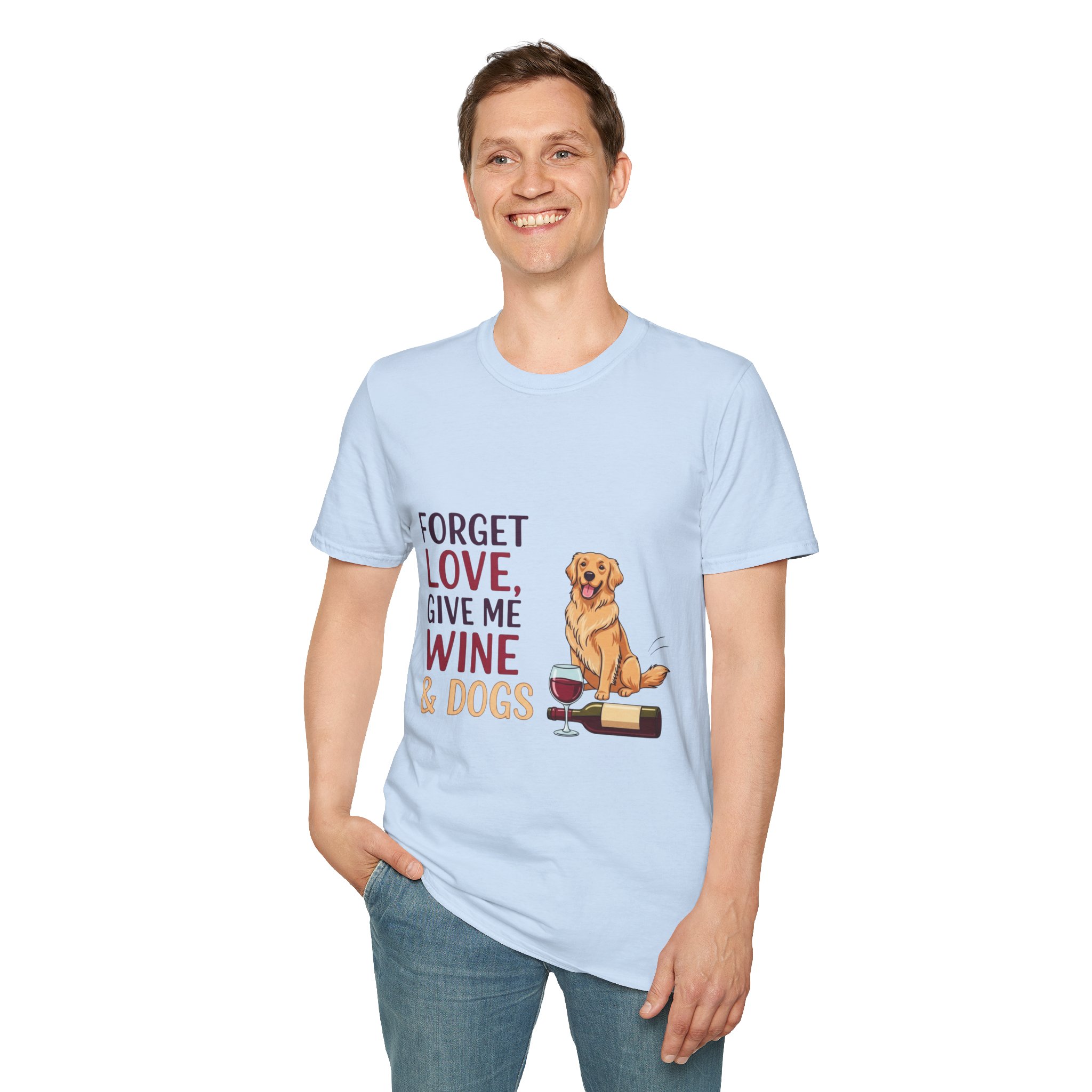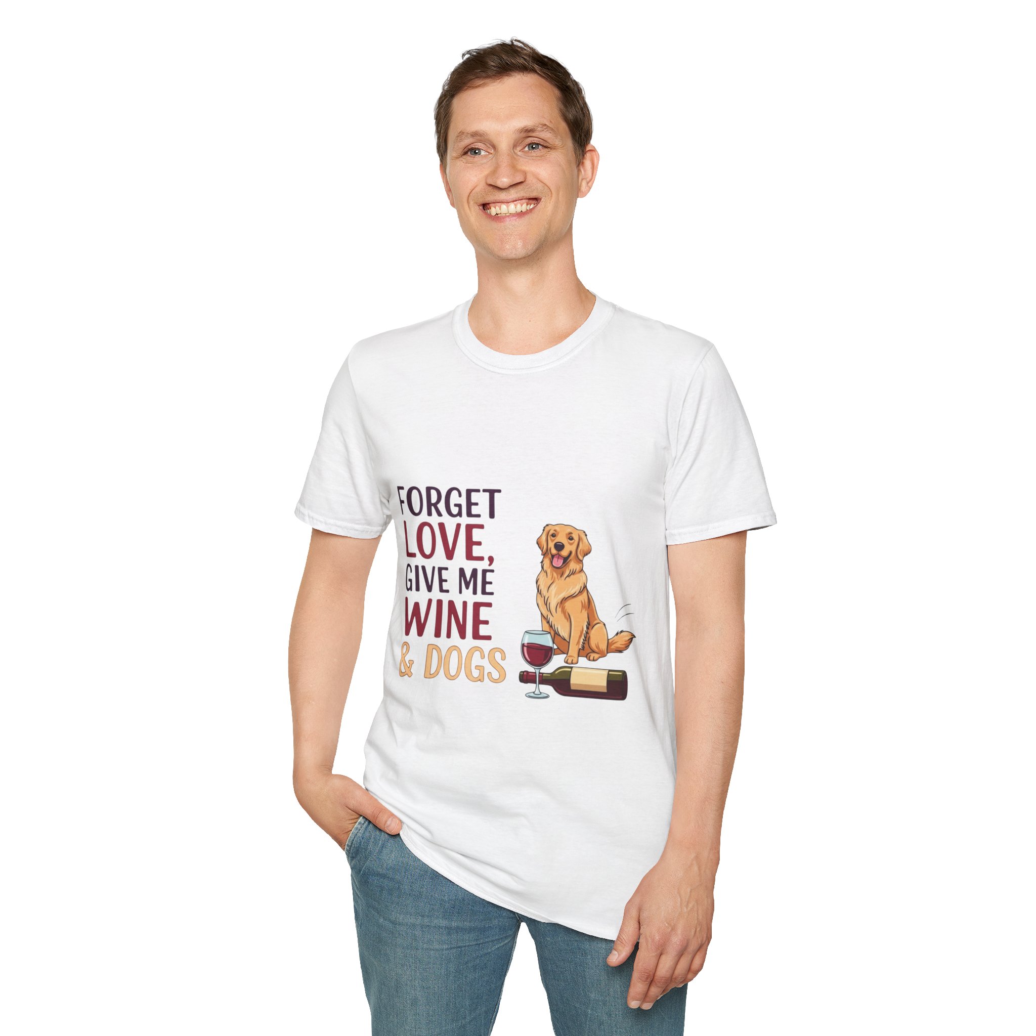 Forget Love Give Me Wine & Dogs Unisex T-Shirt | Funny Dog Mom Wine Lover Tee
