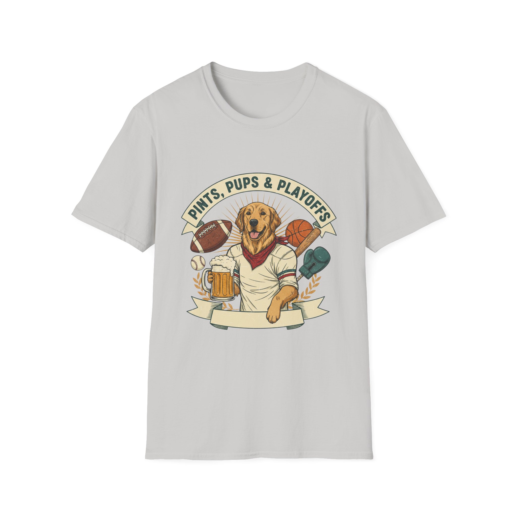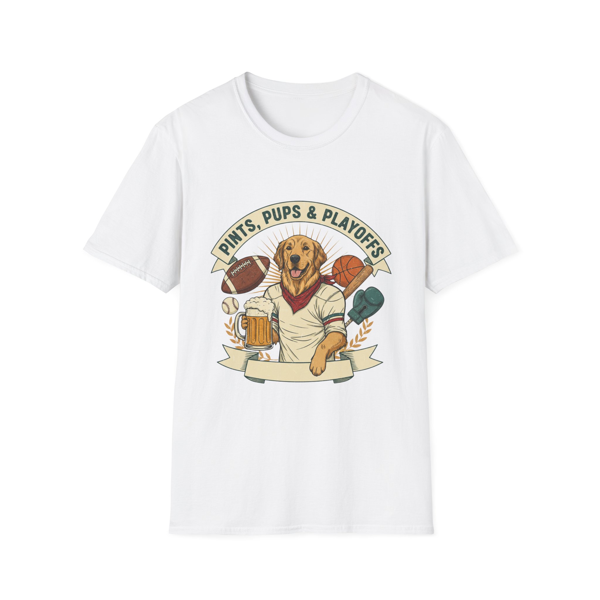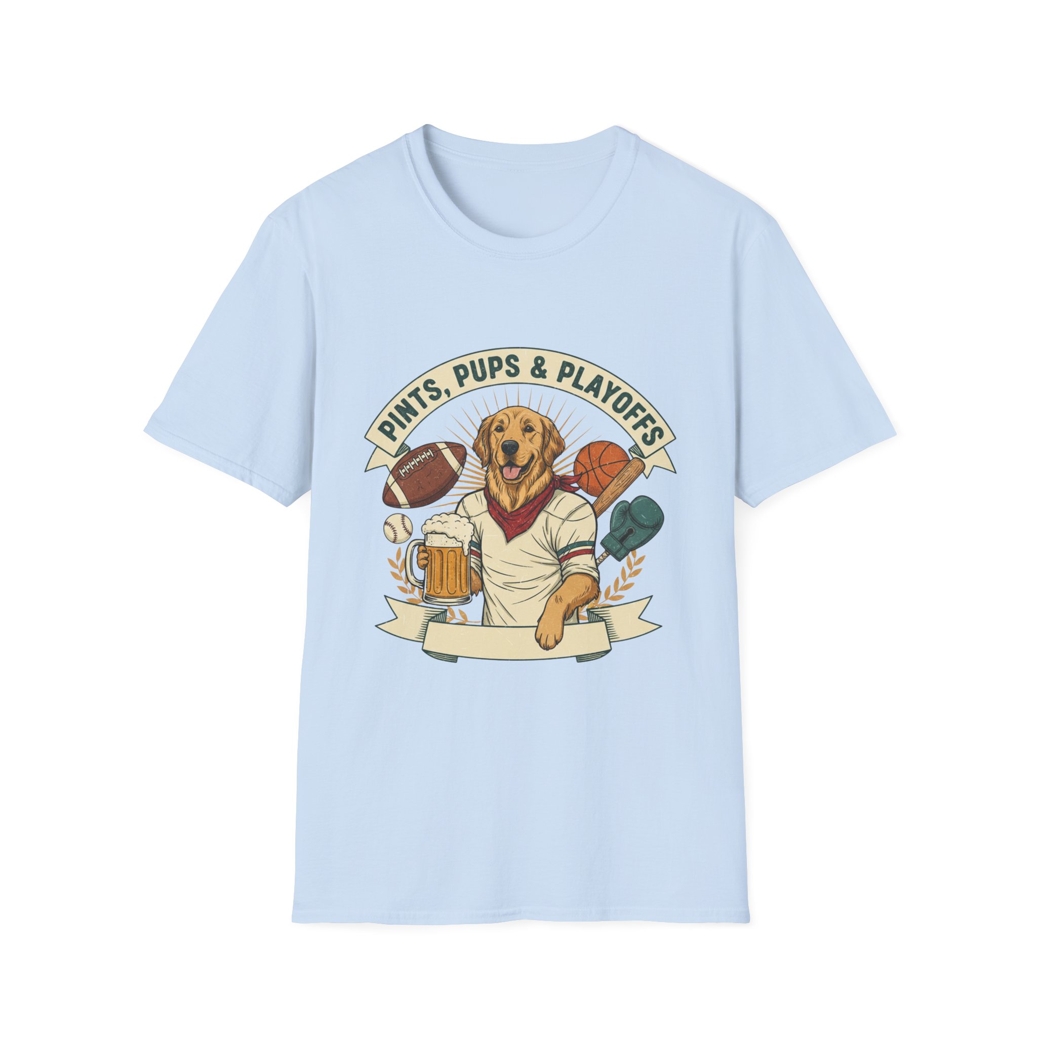 Pints, Pups & Playoffs T-Shirt | Funny Sports and Dog Lover Beer Tee