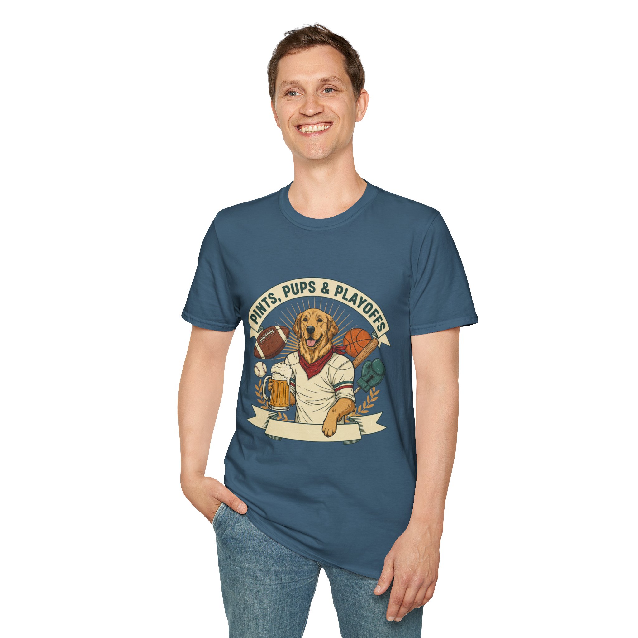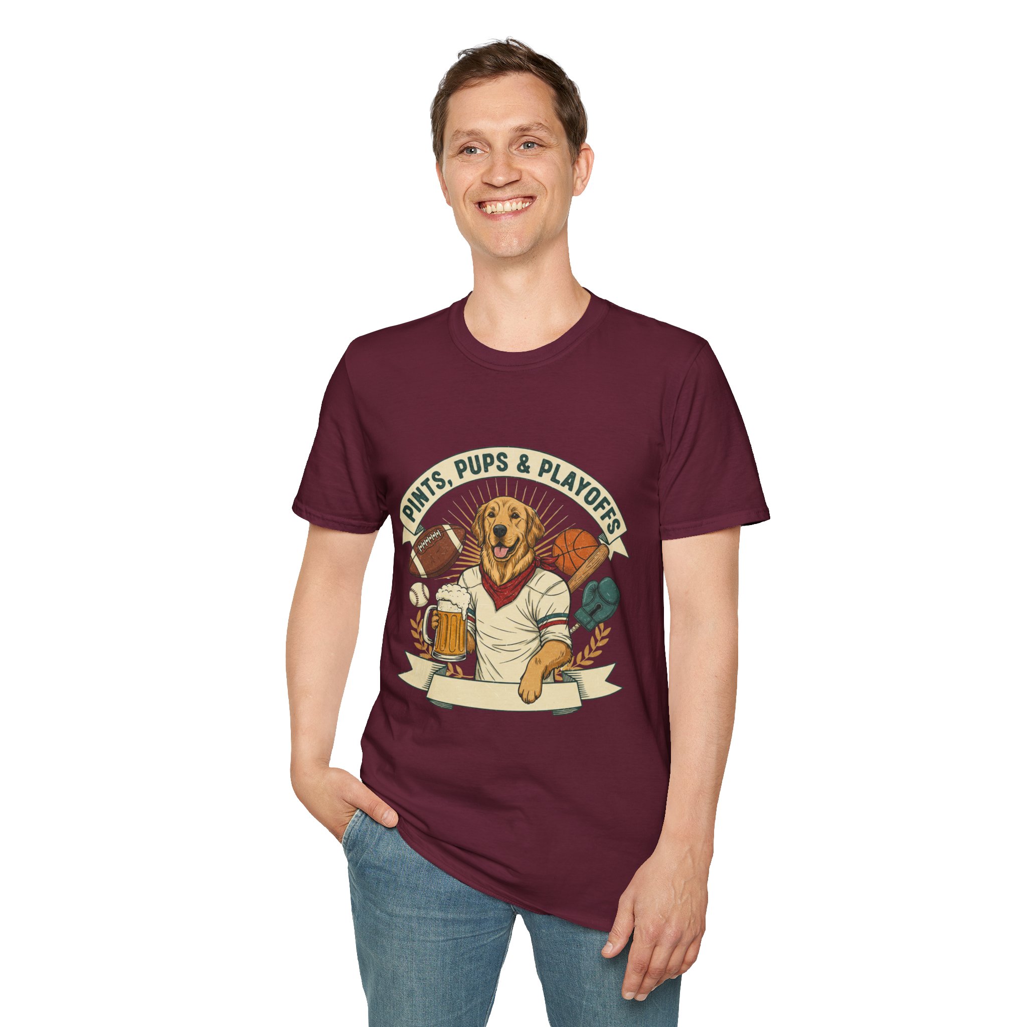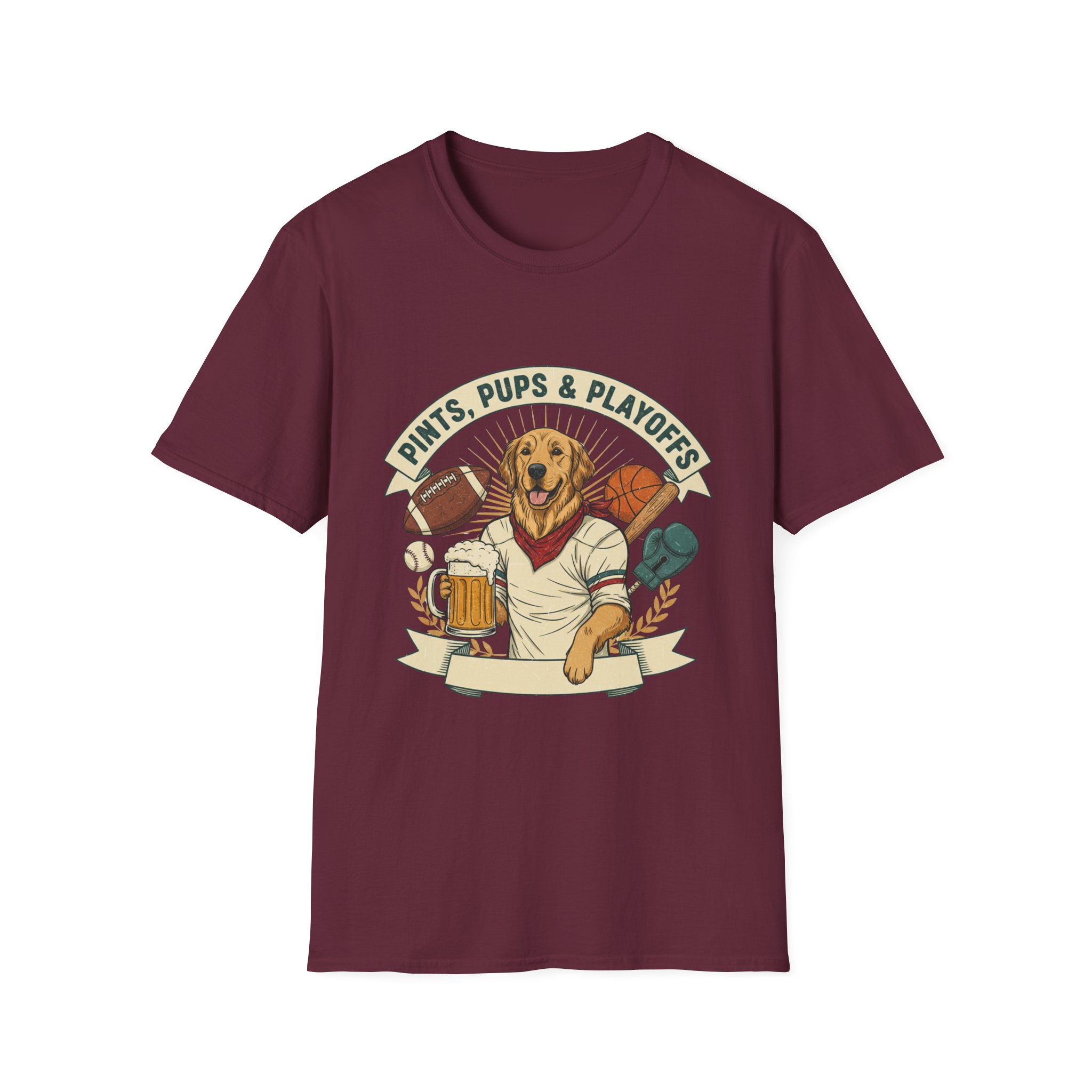 Pints, Pups & Playoffs T-Shirt | Funny Sports and Dog Lover Beer Tee