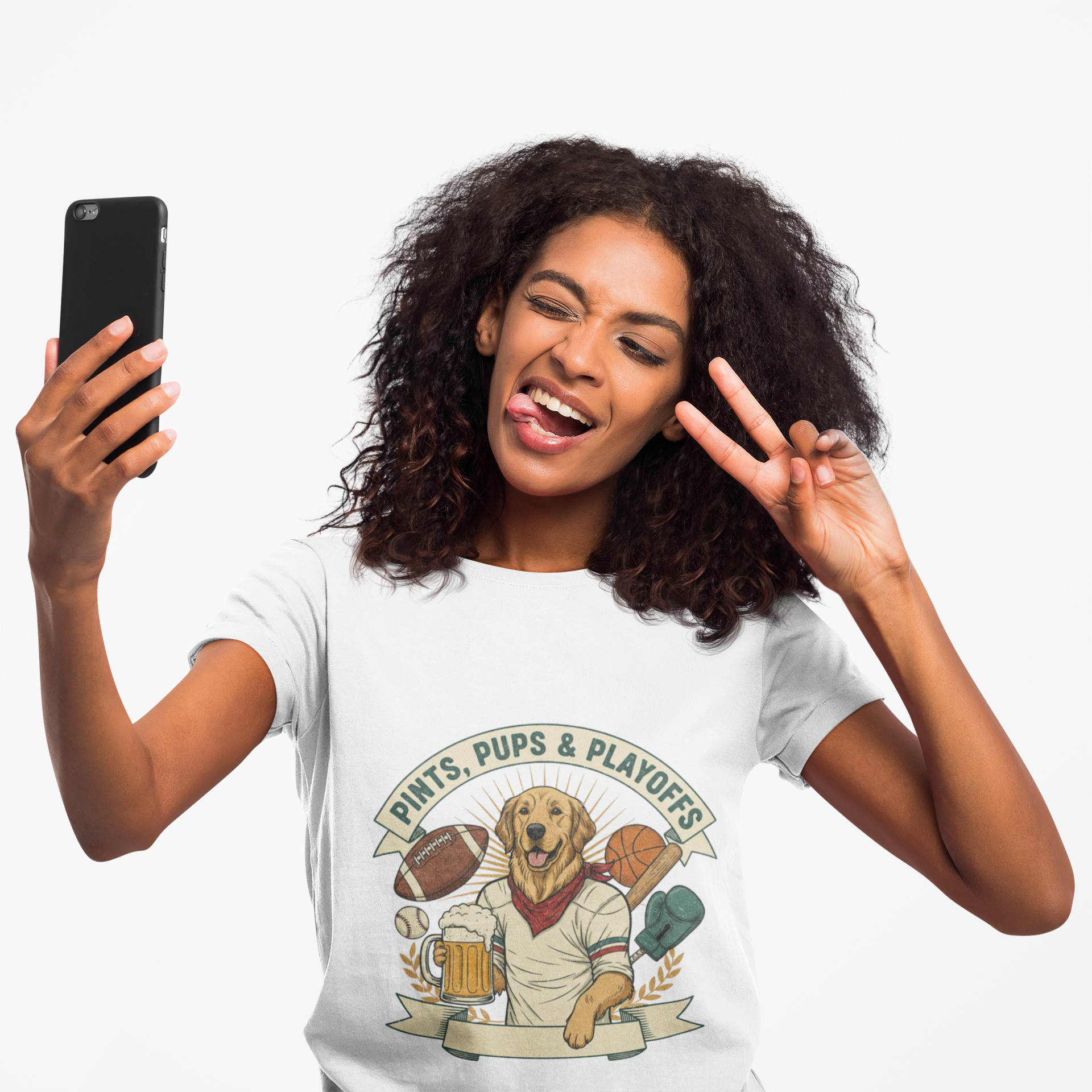Cheers to game days, good brews, and wagging tails! This “Pints, Pups & Playoffs” t-shirt brings together everything you love — sports, dogs, and a cold pint in hand. Featuring a sporty pup surrounded by footballs, basketballs, and more, this fun unisex tee is perfect for dog-loving sports fans who live for the excitement of playoffs season.