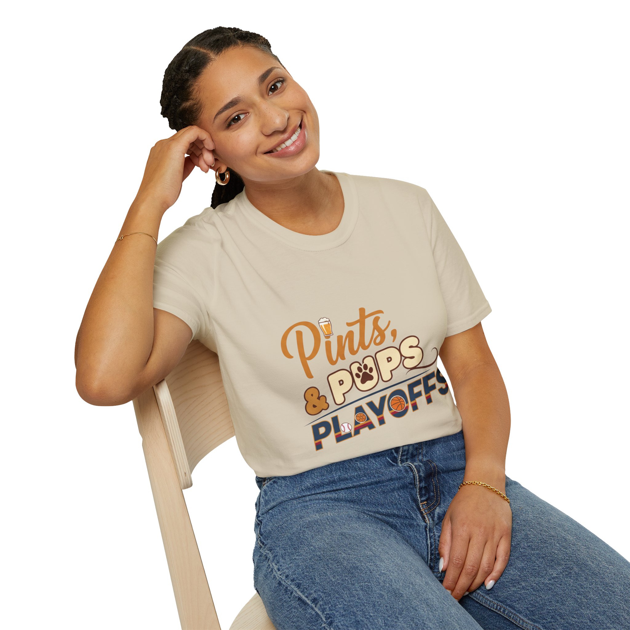 Game on, beer in hand, dog by your side — that’s the winning lineup! This “Playoffs, Pints & Pups” unisex softstyle t-shirt is made for sports fans who know that every great game day includes good brews and their favorite four-legged friend.