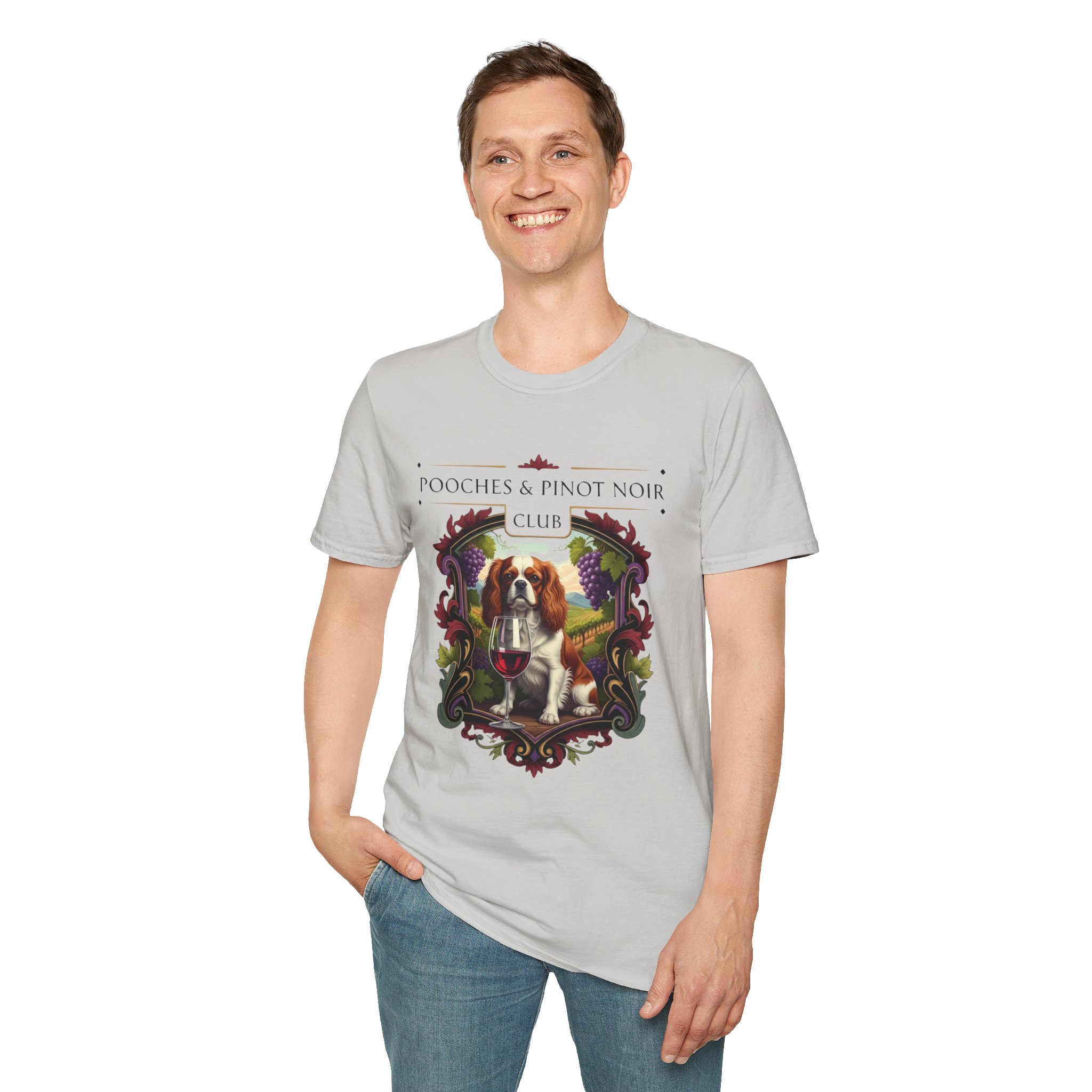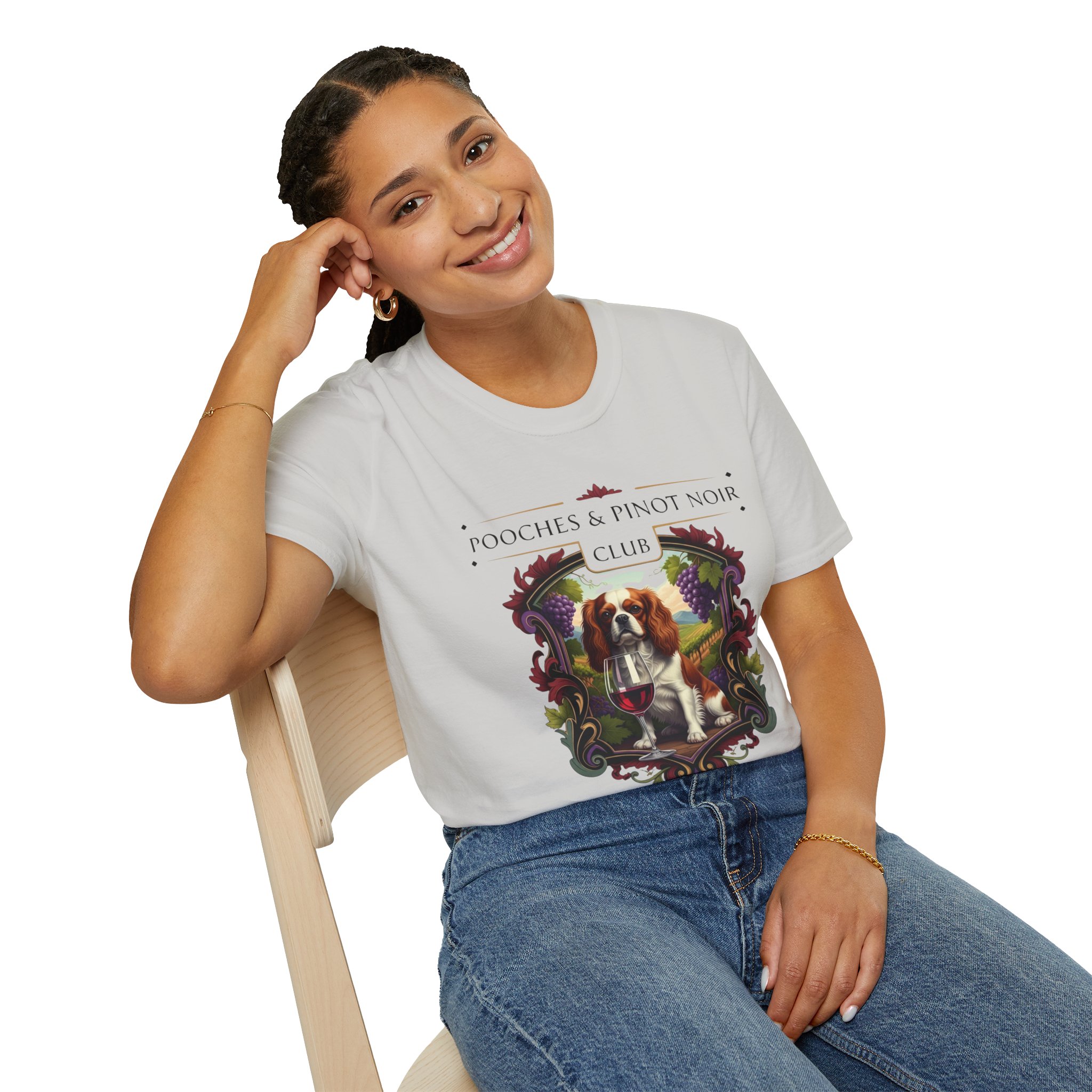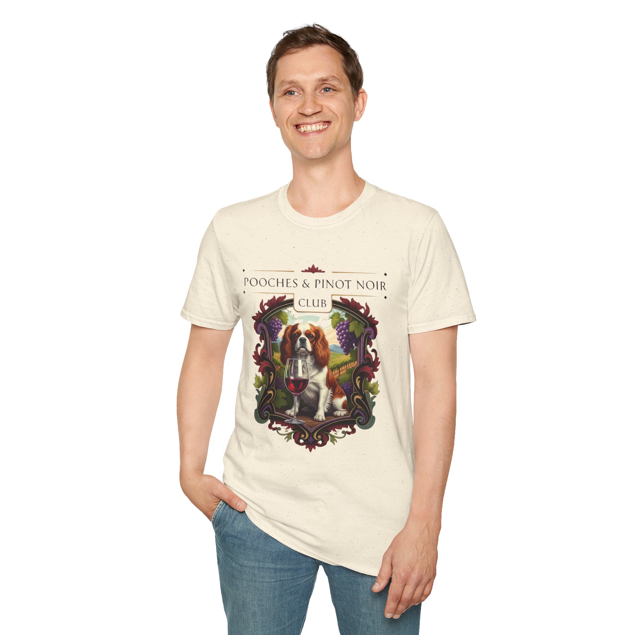 Pooches & Pinot Noir Club T-Shirt | Elegant Dog & Wine Lover Tee