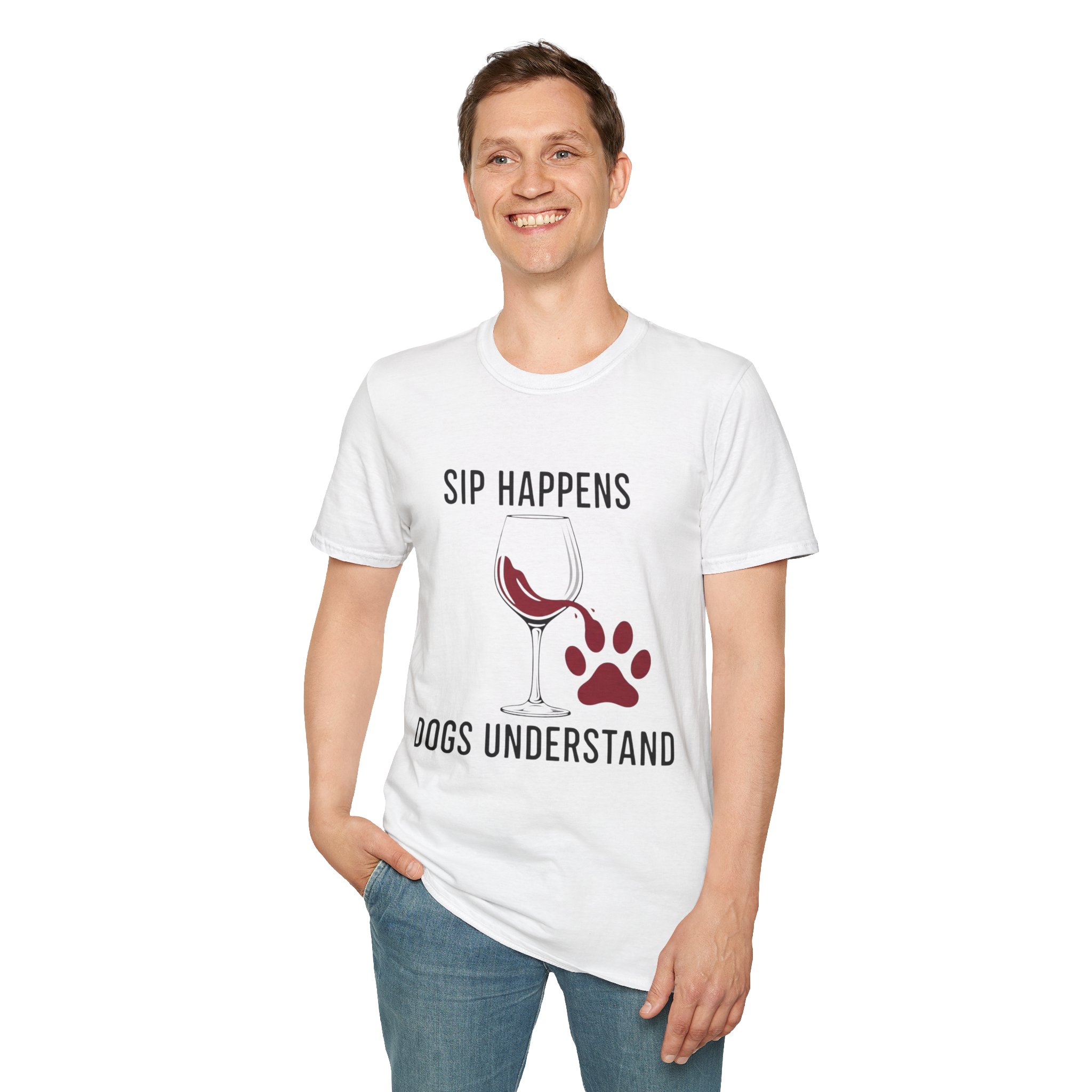 The “Sip Happens” tee captures that perfectly chaotic, wonderfully comforting bond between dog parents and the pets who accept us through every clumsy moment. It’s the ideal shirt for unwinding on the couch, laughing with friends over a glass of red, or enjoying slow, easy evenings with your loyal furry sidekick by your feet.